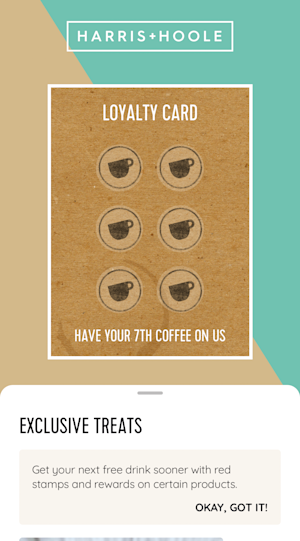 The H+H app is full of exciting deals and competitions with loads of giveaways and interesting coffee information. We also offer THE MOST GENEROUS LOYALTY SCHEME ON THE HIGH STREET. You get a free drink for every 6 barista made drinks you buy.